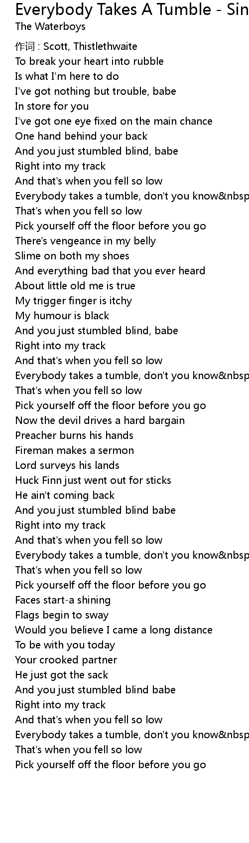 | Everybody takes a tumble, don' t you know nbsp? | |