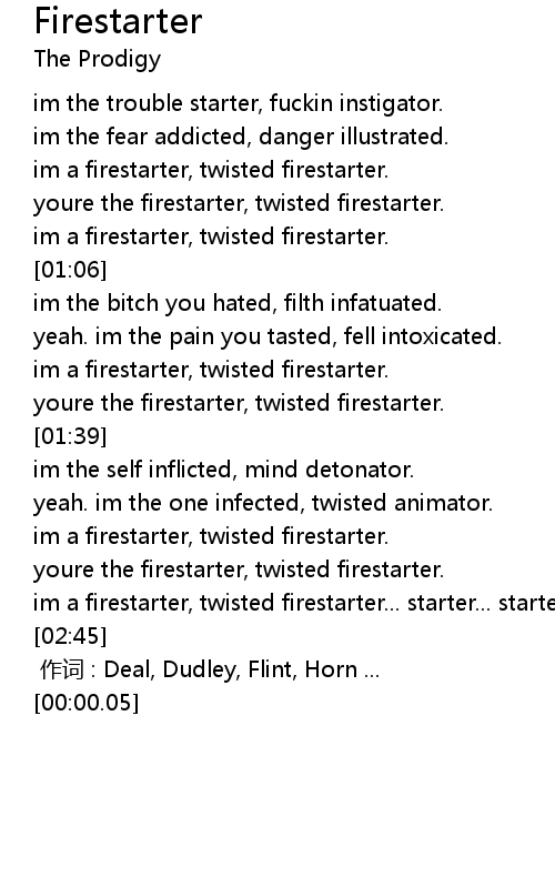 | [01:31] | youre the firestarter, twisted firestarter. |