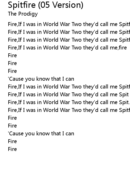 Fire,If I was in World War Two they'd call me Spit |