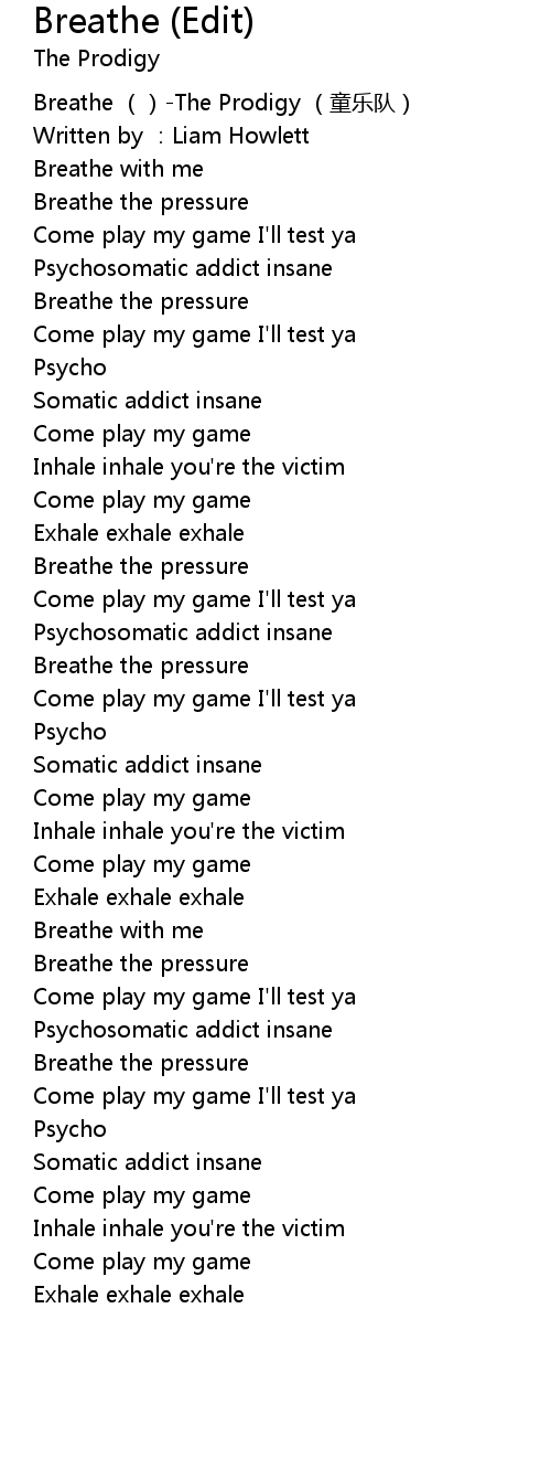 | [00:00.00] | Breathe ()-The Prodigy (童乐队) |
