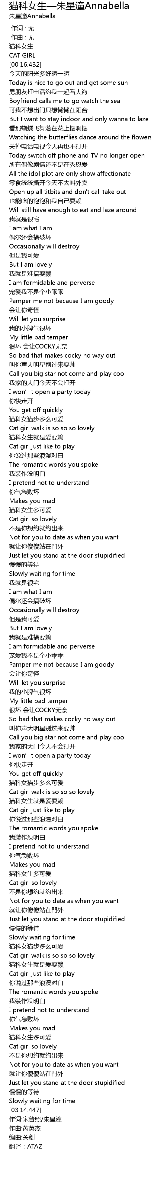 | [02:36.945] | māo kē nǚ shēng duō kě ài |