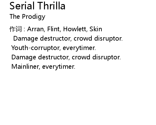 | 作词 : Arran, Flint, Howlett, Skin | |