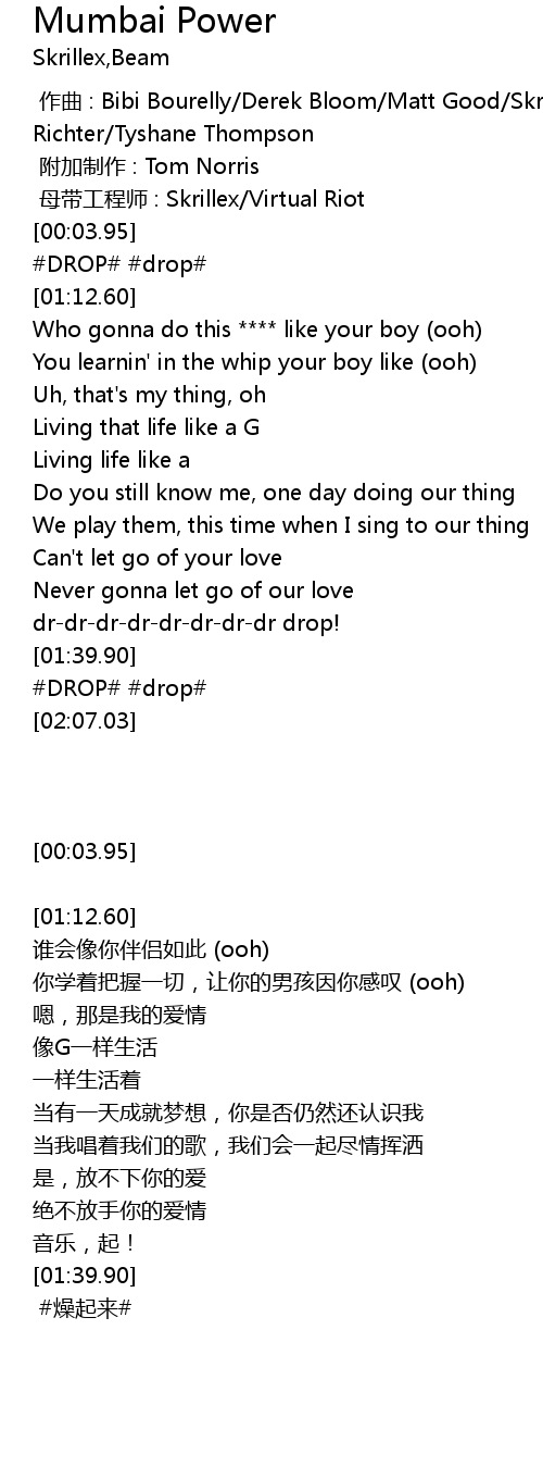 | [00:02.00] | mǔ dài gōng chéng shī : Skrillex Virtual Riot |