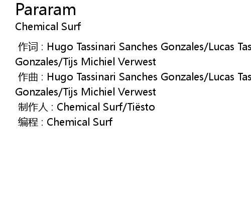 | [00:00.00-1] | 制作人 : Chemical Surf/Tiësto |