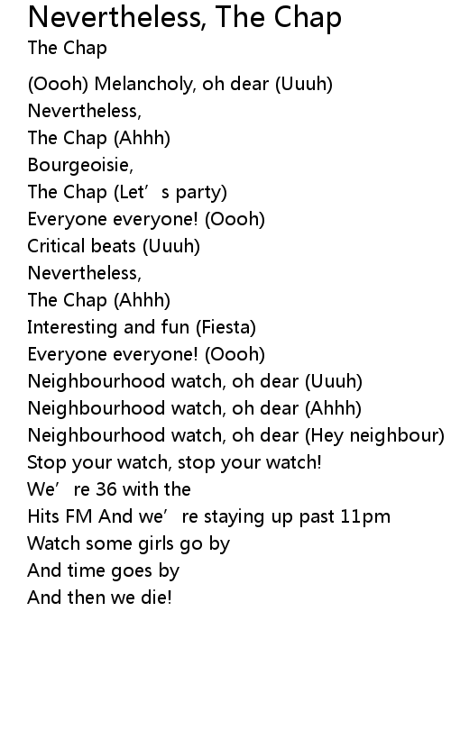 | Neighbourhood watch, oh dear (Hey neighbour) | |