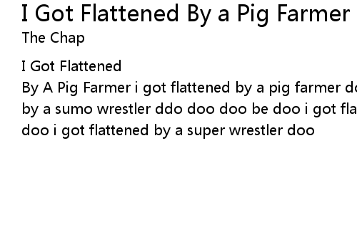 By A Pig Farmer i got flattened by a pig farmer doo doo be doo i got flattened by a sumo wrestler ddo doo doo be doo i got flattened by pig farmer doo doo be doo i got flattened by a super wrestler doo