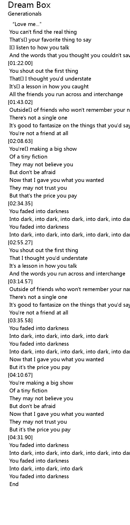 | [04:37.49] | Into dark, into dark, into dark, into dark, into dark |