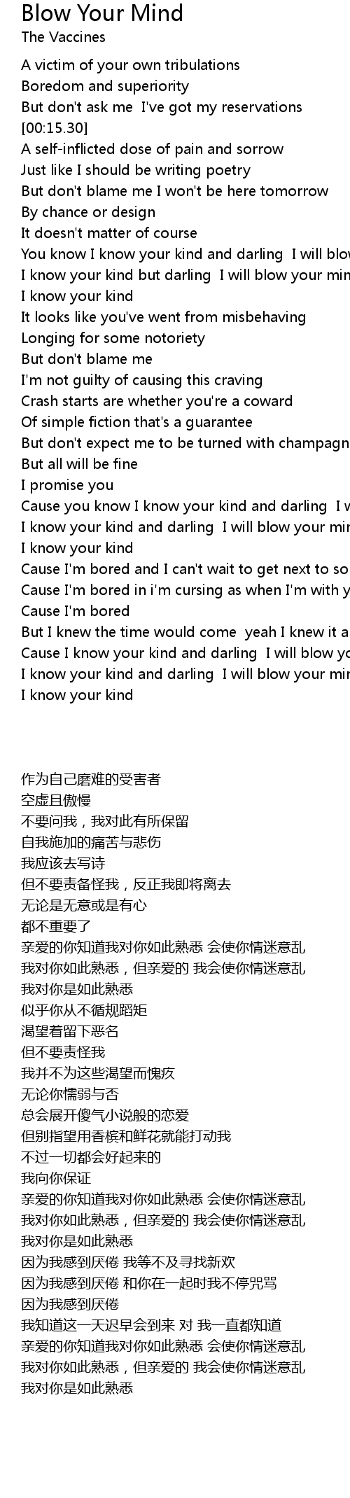 Cause you know I know your kind and darling I will blow your mind |