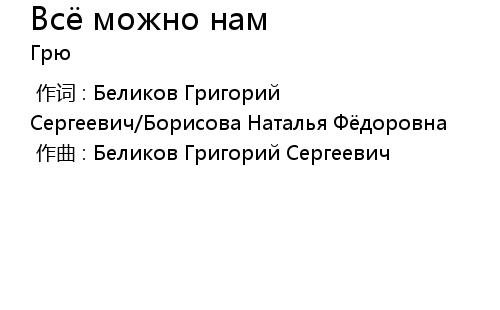 | [00:00.00-1] | 作词 : Беликов Григорий Сергеевич/Борисова Наталья Фёдоровна |