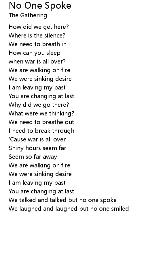 | Song | No One Spoke |