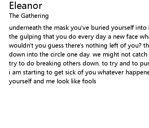 underneath the mask you've buried yourself into it's coal-black i am tired of the gulping that you do every day a new face what if i unscrew your own identity wouldn't you guess there's nothing left of you? the quicksand of life drags us down into the circle one day. we might not catch you i feel sorry for what you try to do breaking others down. to try and to pursue your own selfish interests i am starting to get sick of you whatever happened ever since you left you make yourself and me look like fools |