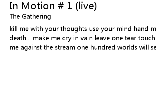 | kill me with your thoughts use your mind hand me over to this world into death... make me cry in vain leave one tear touch my face with your sigh leave me against the stream one hundred worlds will see me passing by... |