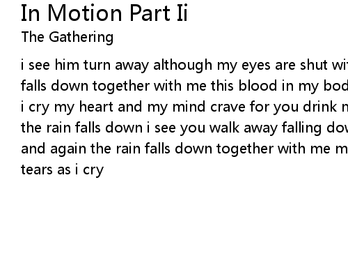 | i see him turn away although my eyes are shut with emptiness and again the rain falls down together with me this blood in my body runs for you drink my tears as i cry my heart and my mind crave for you drink my tears as i cry it is sad how the rain falls down i see you walk away falling down i cry and scream your name and again the rain falls down together with me my ache is yours as i am drink my tears as i cry |