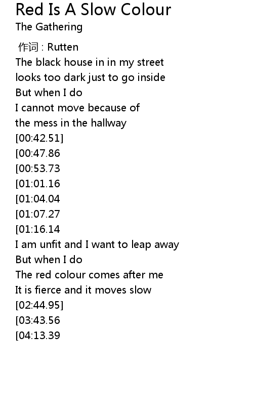| Song | Red Is A Slow Colour |