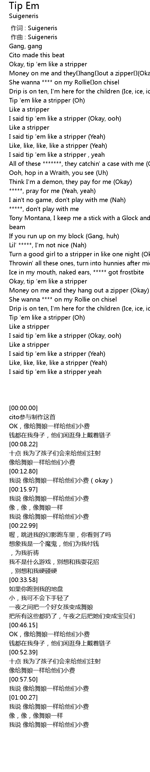 | [00:55.72] | Tip 'em like a stripper (Oh) |