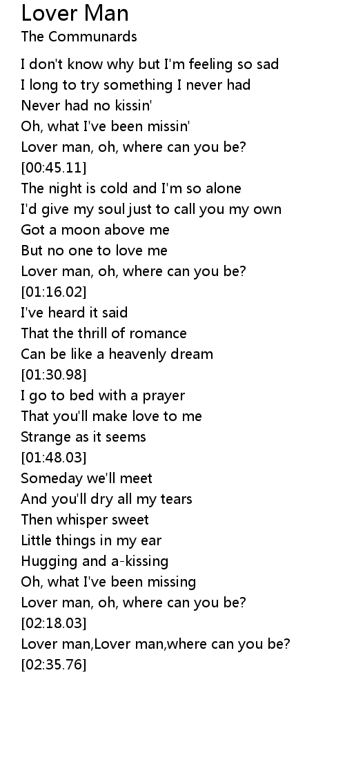 Lover man,Lover man,where can you be? |