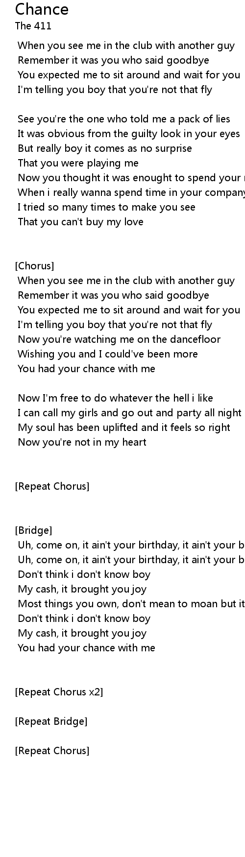 You had your chance with me |