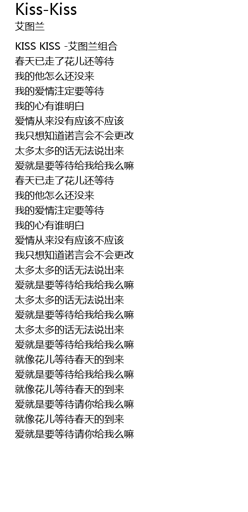 | [00:01.221] | KISS KISS -艾图兰组合 |
