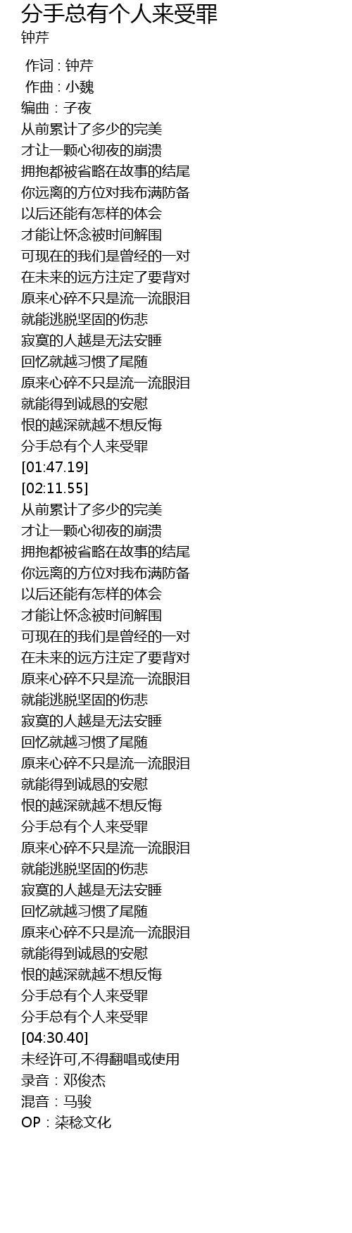 | [03:46.66] | fēn shǒu zǒng yǒu gè rén lái shòu zuì |