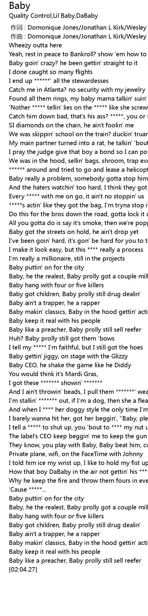 | [01:41.44] | How that boy DaBaby in the air not gettin' his **** sucked? |