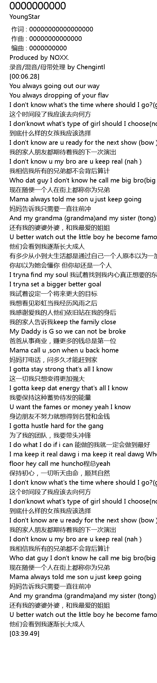 | [00:00.00] | zuò cí : 00000000000000000 |