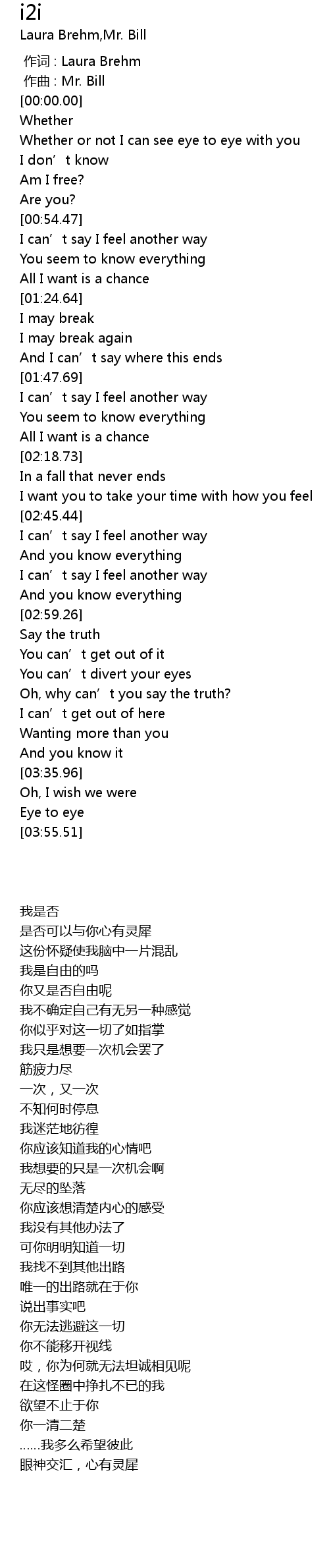 | [03:50.85] | Eye to eye |