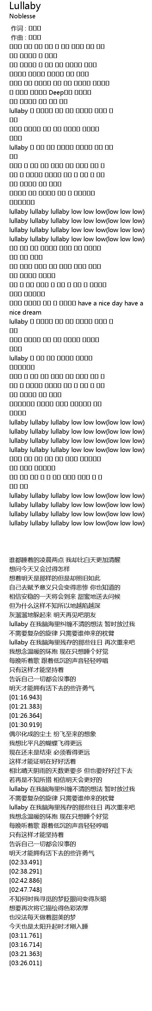 | [03:16.714] | lullaby lullaby lullaby low low low(low low low) |