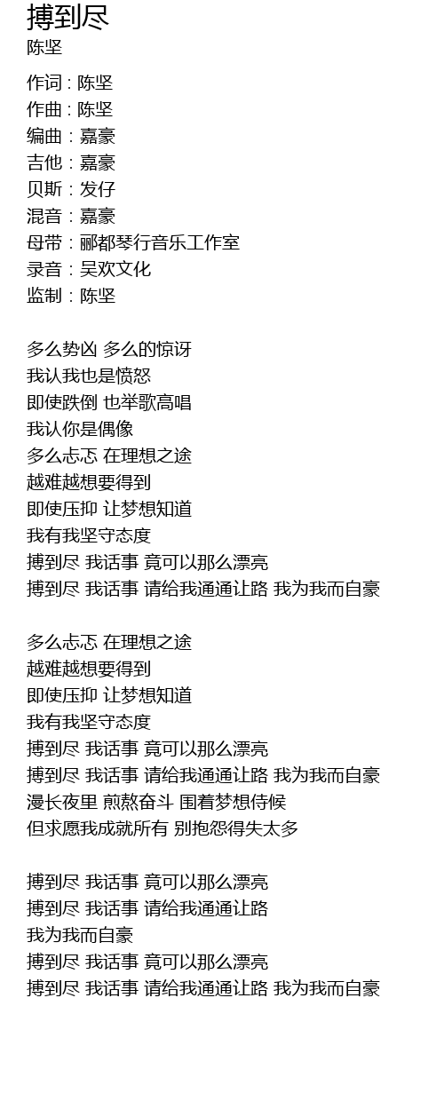 | 搏到尽 我话事 请给我通通让路 我为我而自豪 |