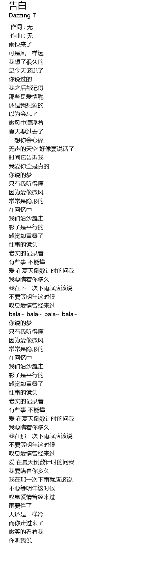 | [00:00.00] | 作词 : 无 |