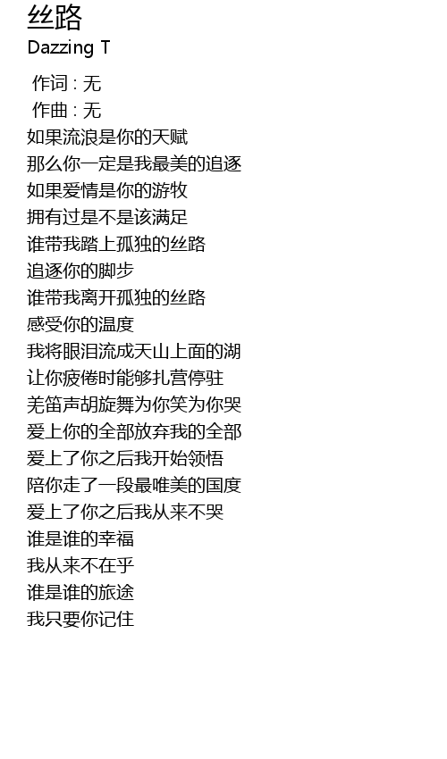 | [01:21.71] | 谁带我离开孤独的丝路 |