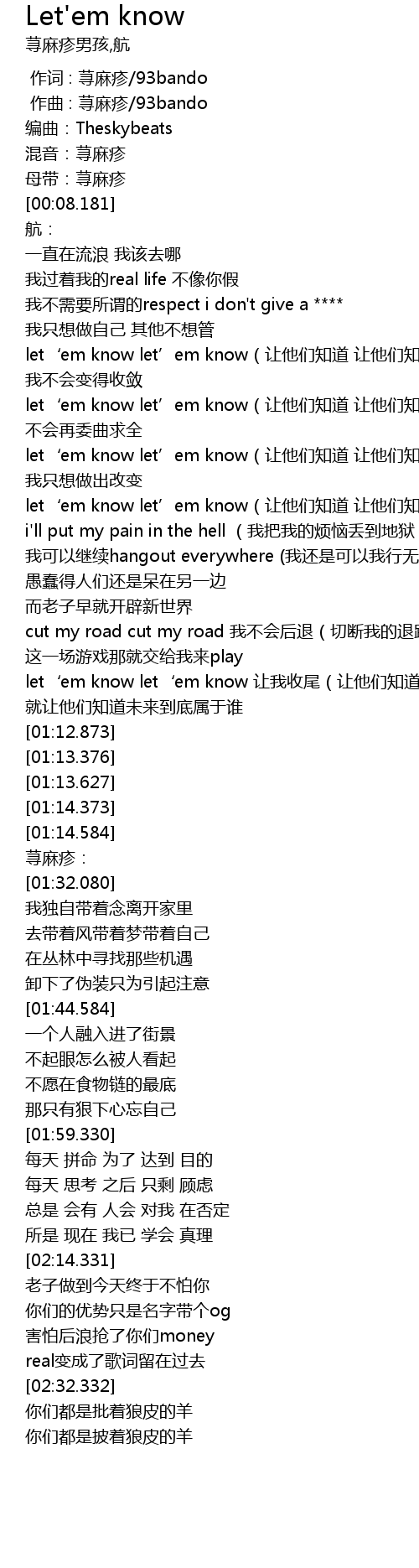 | [00:41.926] | let‘em know let’em know(让他们知道 让他们知道) |