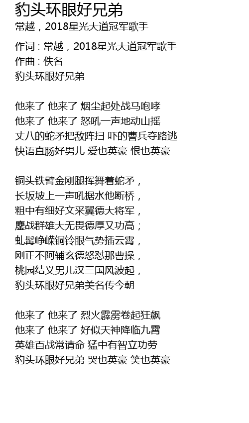| Song | 豹头环眼好兄弟 |