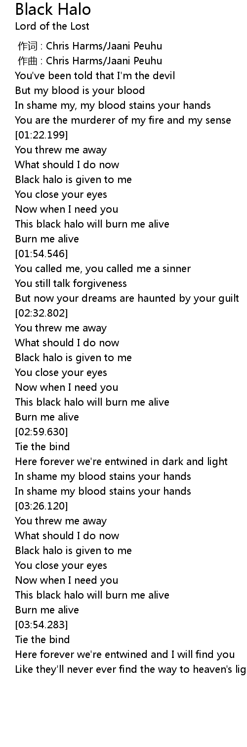 | [00:01.000] | zuo qu : Chris Harms Jaani Peuhu |