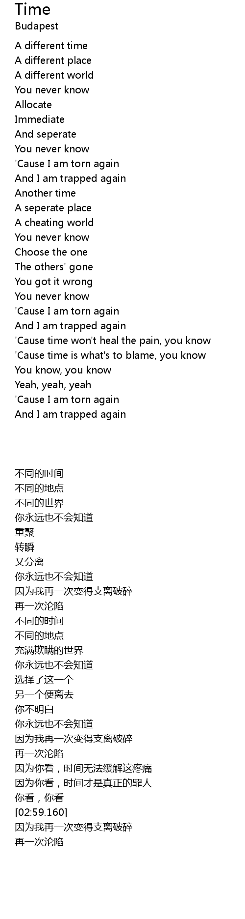 | [02:22.320] | 'Cause time won't heal the pain, you know |