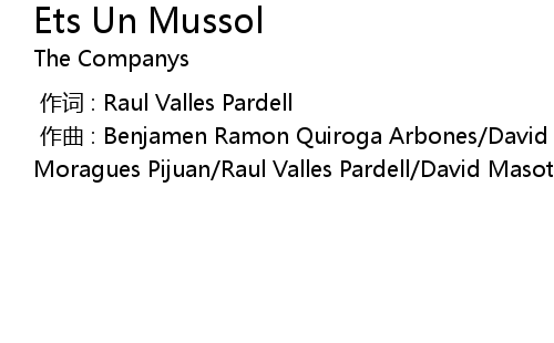 | [00:00.000] | 作曲 : Benjamen Ramon Quiroga Arbones/David Rovira Puig/Jordi Moragues Pijuan/Raul Valles Pardell/David Masot Florensa/Robert Massip Valles |