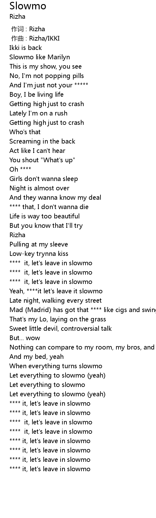 | [01:04.91] | Yeah, ****it let's leave it slowmo |