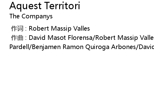 | [00:00.000] | 作曲 : David Masot Florensa/Robert Massip Valles/Raul Valles Pardell/Benjamen Ramon Quiroga Arbones/David Rovira Puig/Jordi Moragues Pijuan |
