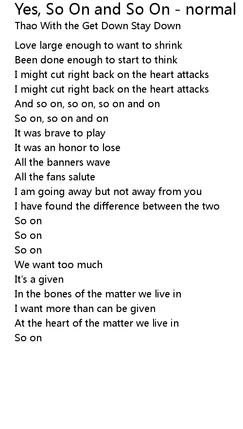 So on, so on and on |