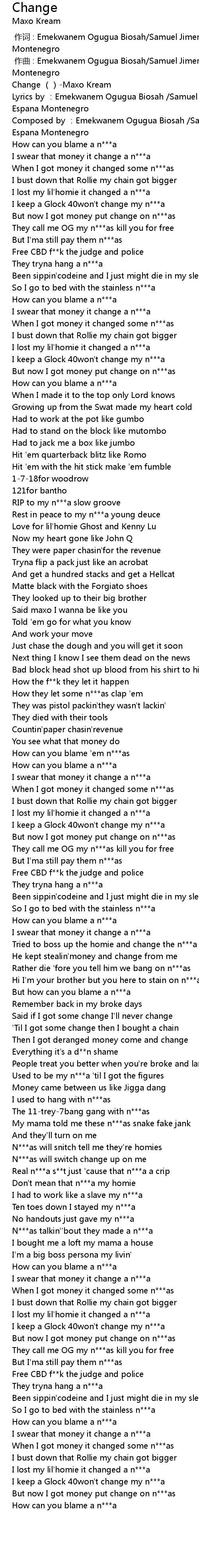 | [00:00.00] | Change ()-Maxo Kream |