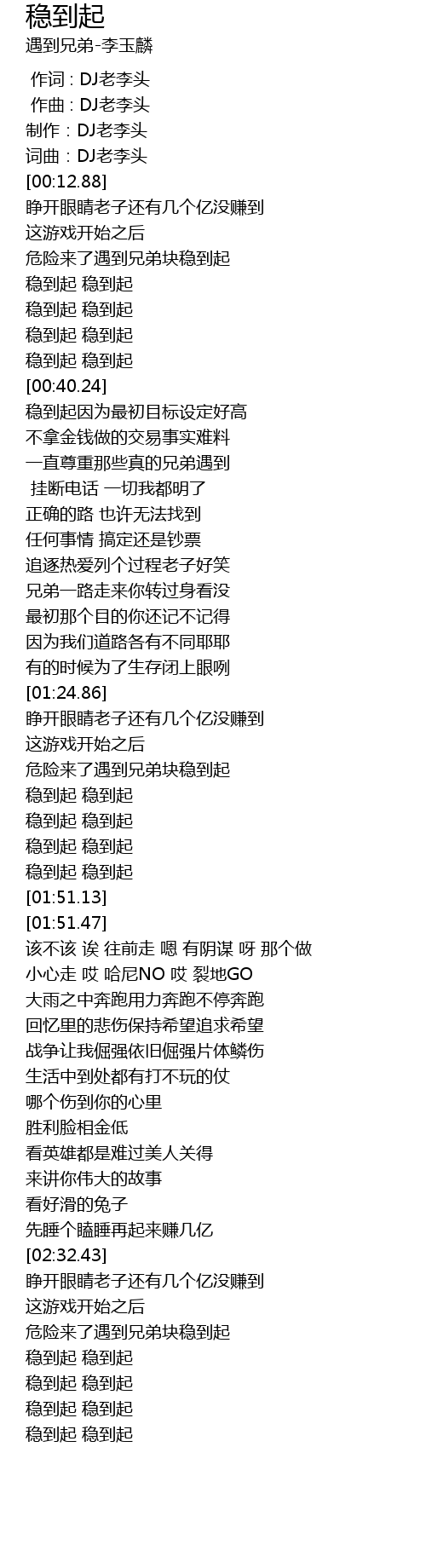 | [03:00.31] | 稳到起 稳到起 |