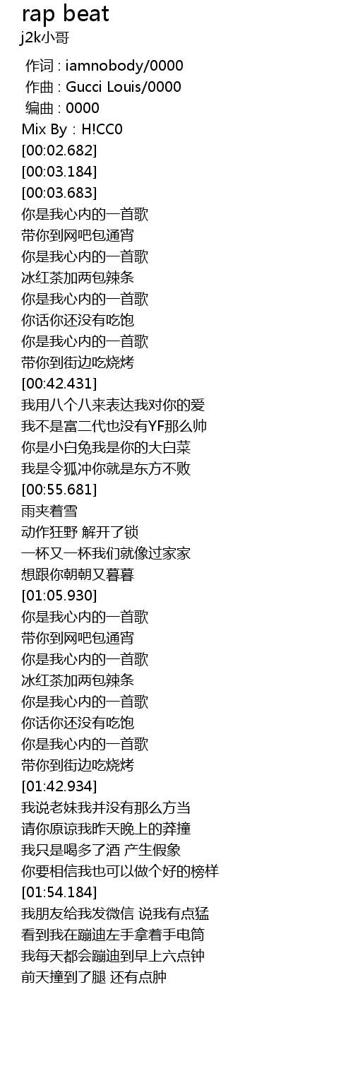 | [00:00.000] | 作词 : iamnobody/0000 |