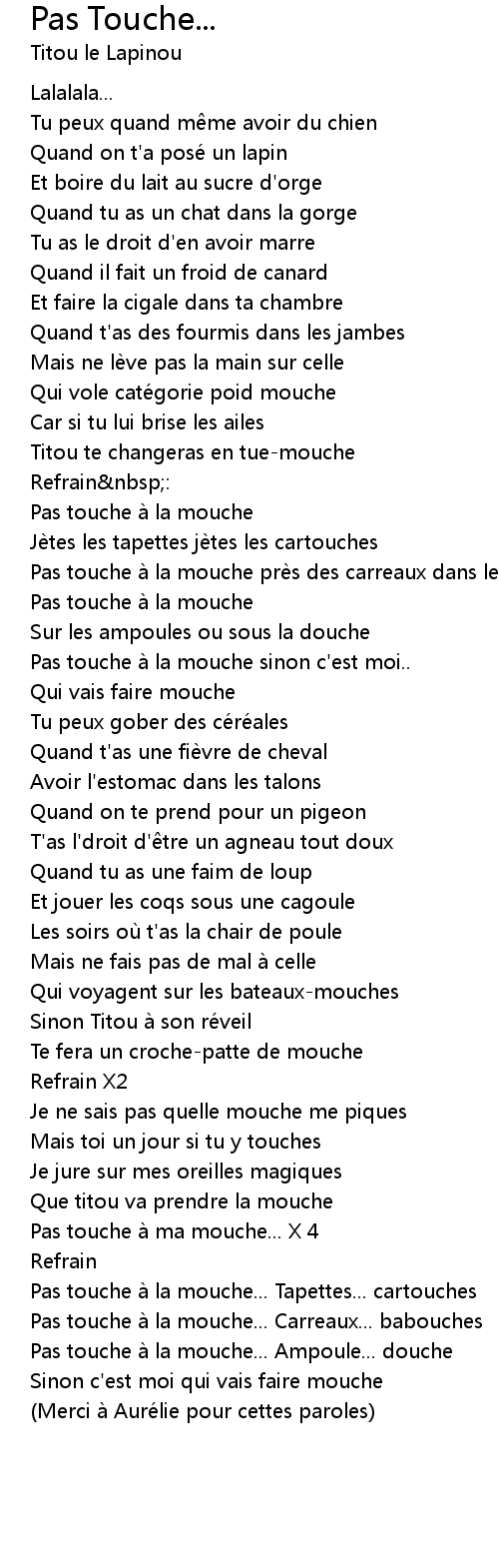 | Merci à Auré lie pour cettes paroles |