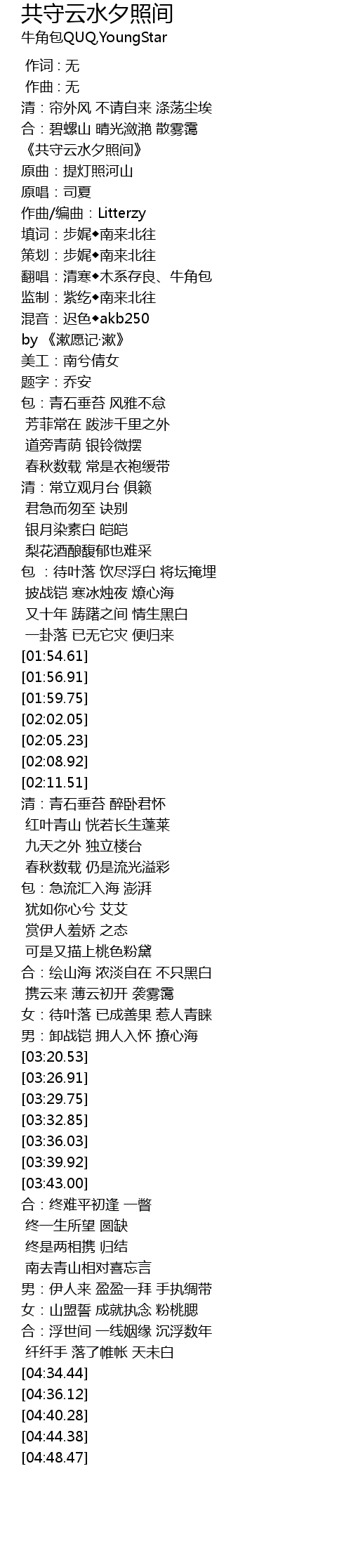 | [00:17.89] | 《共守云水夕照间》 |