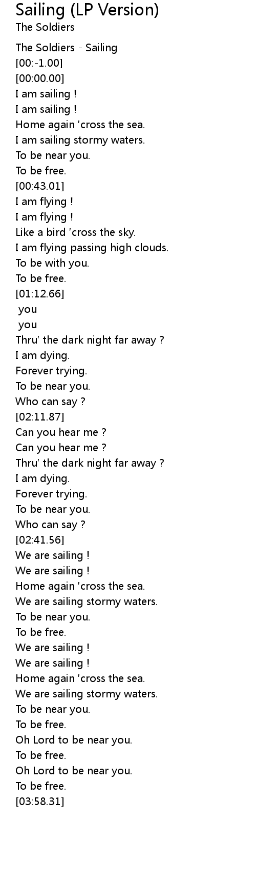 | [00:18.00] | I am sailing ! |