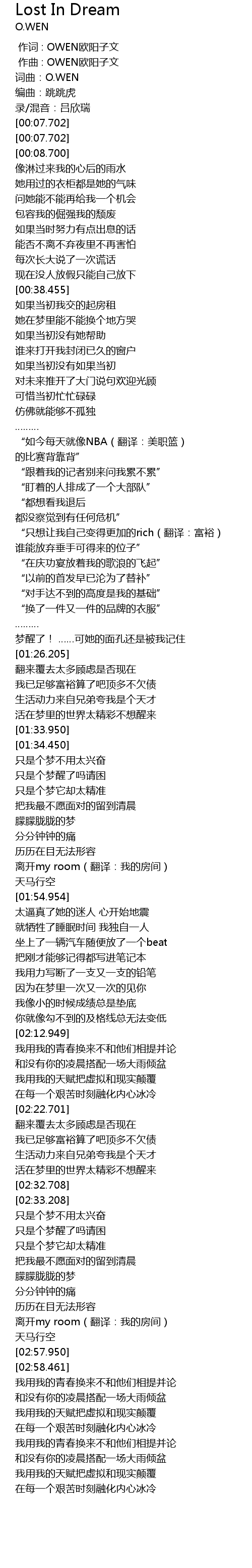 | [00:01.000] | zuo qu : OWEN ou yang zi wen |