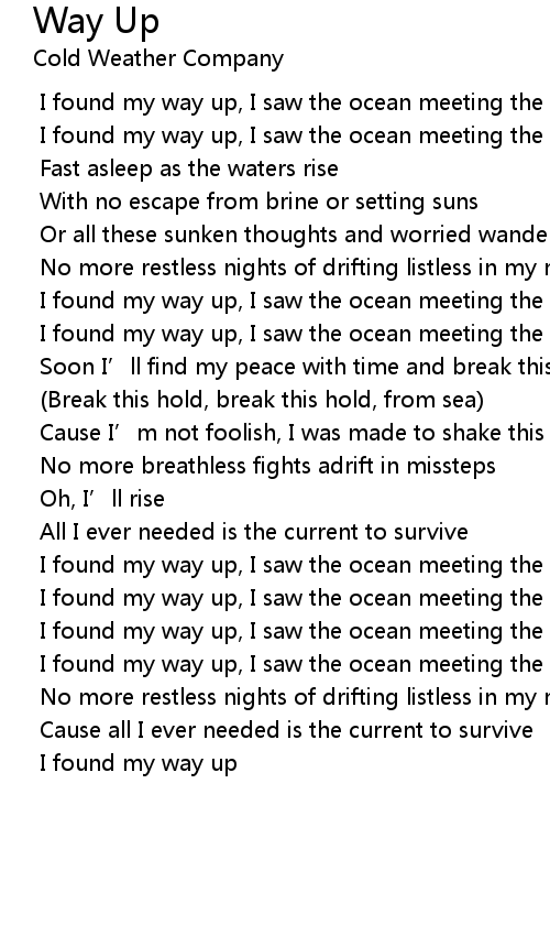 | [01:11.818] | I found my way up, I saw the ocean meeting the sky |