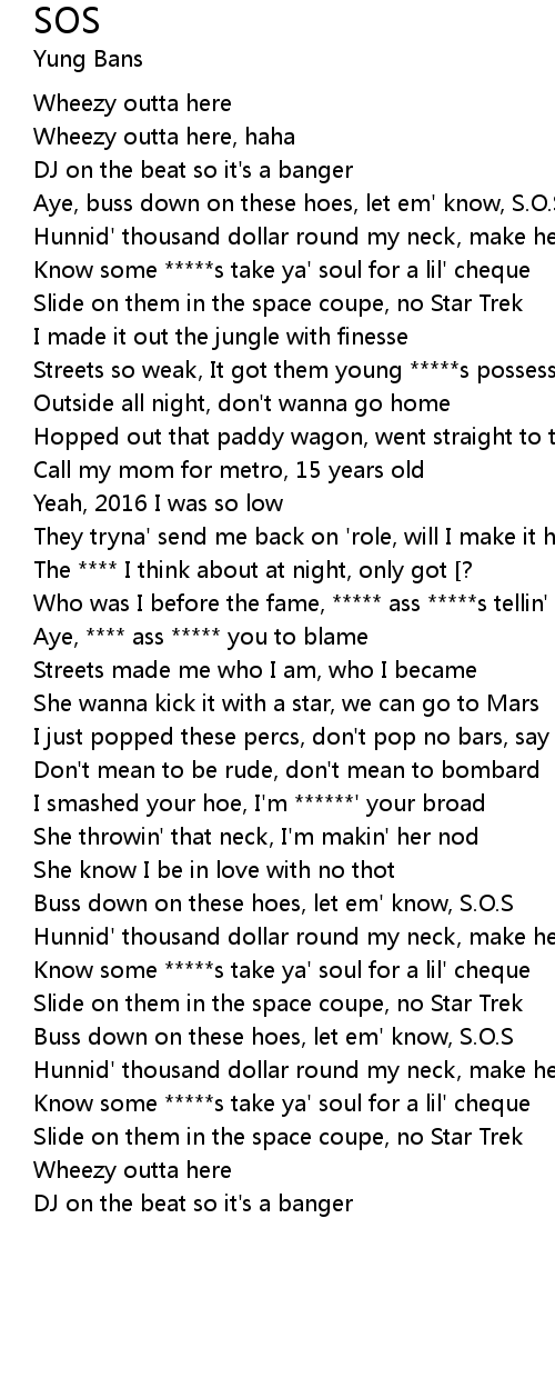 Aye, buss down on these hoes, let em' know, S.O.S |