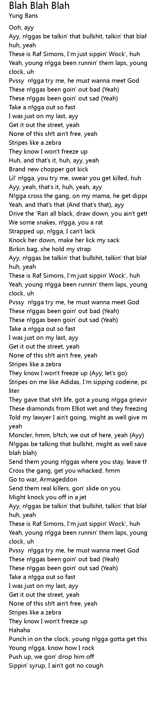 Ayy, n!ggas be talkin' that bullshit, talkin' that blah blah blah, huh, yeah |