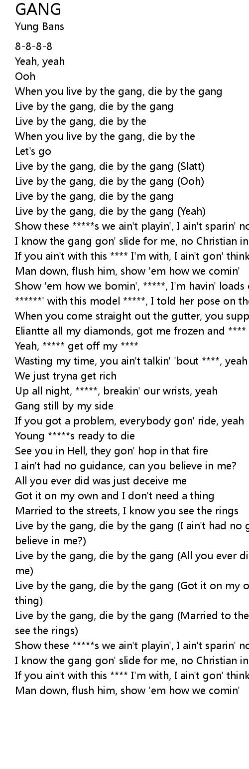Live by the gang, die by the gang (I ain't had no guidance, can you believe in me?) |