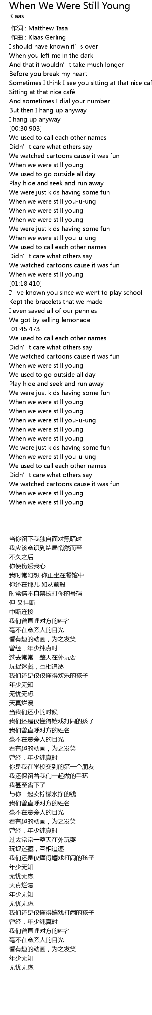 | [02:17.672] | When we were still young |